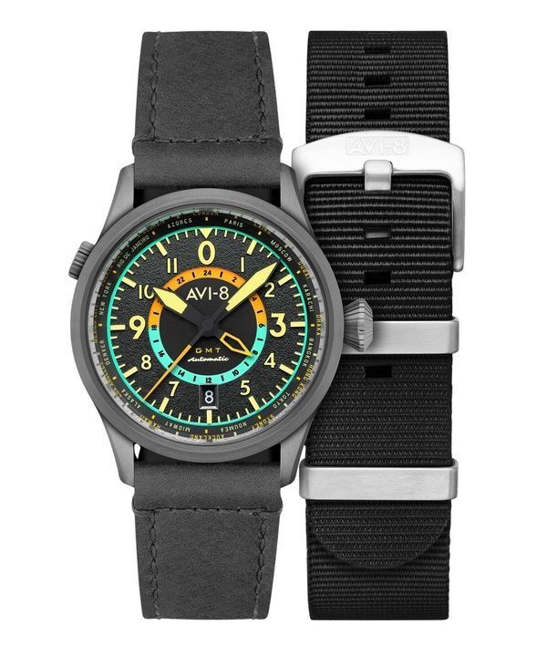 AVI-8 AVI-8 Hawker Hurricane Carey Dual Time Rangoon schwarzes Zifferblatt Quarz AV-4088-11 Herrenuhr