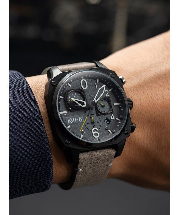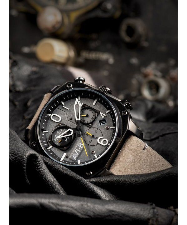 AVI-8 Hawker Hunter Retrograde Chronograph, seegraues Zifferblatt, Quarz AV-4052-03 Herrenuhr