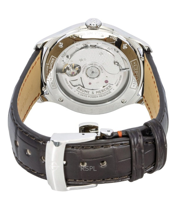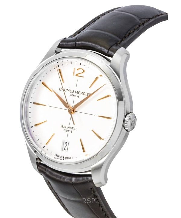 Baume & Mercier Clifton Herrenuhr mit Lederarmband, cremefarbenem Zifferblatt und Automatikwerk, Modell M0A10773