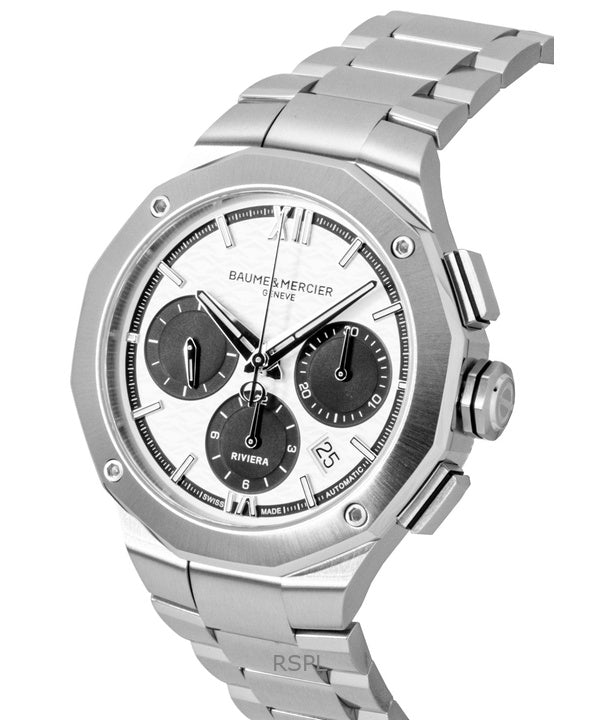 Baume & Mercier Riviera Chronograph Edelstahl Weißes Zifferblatt Automatik M0A10827 100M Herrenuhr