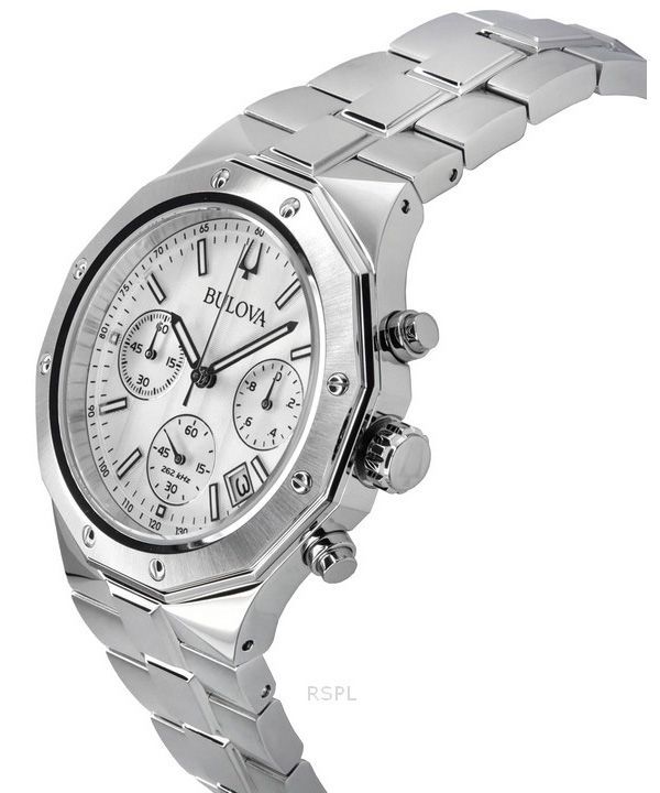Bulova Classic Precisionist Chronograph Edelstahl Silber Zifferblatt Quarz 96B408 100M Herrenuhr