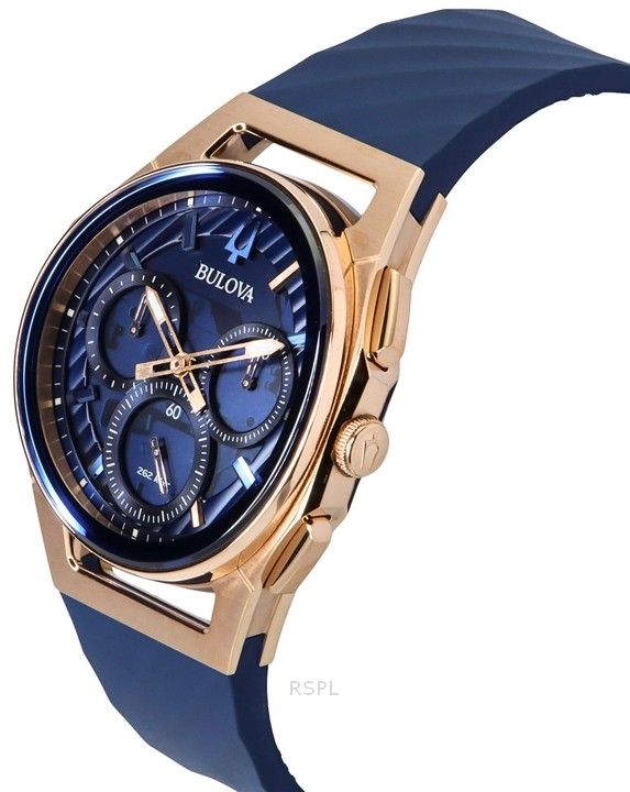 Bulova Marc Anthony CURV Chronograph Kautschukarmband blaues Zifferblatt Quarz 97A185 Herrenuhr
