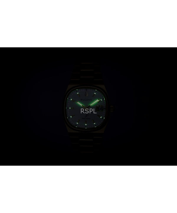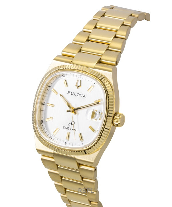 Bulova Super Seville Goldfarbener Edelstahl Weißes Zifferblatt Quarz 97B223 Herrenuhr