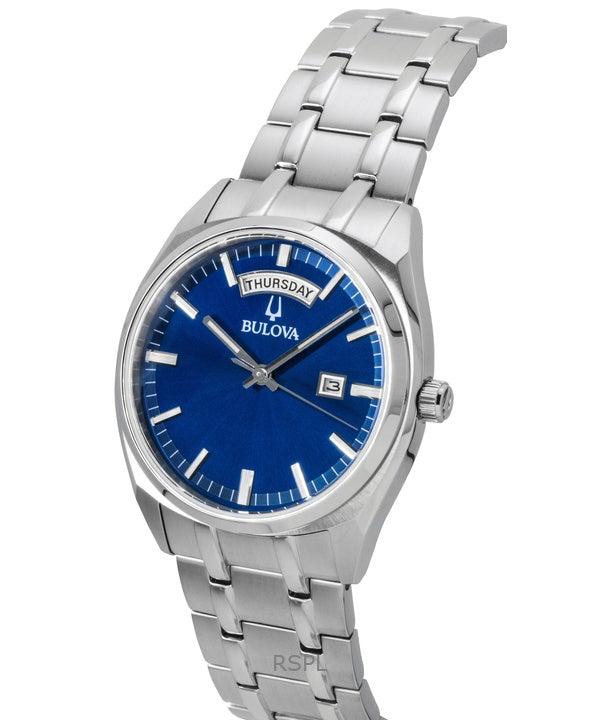 Bulova Surveyor Classic Herrenuhr aus Edelstahl mit blauem Zifferblatt und Quarzwerk (Modell 96C125)