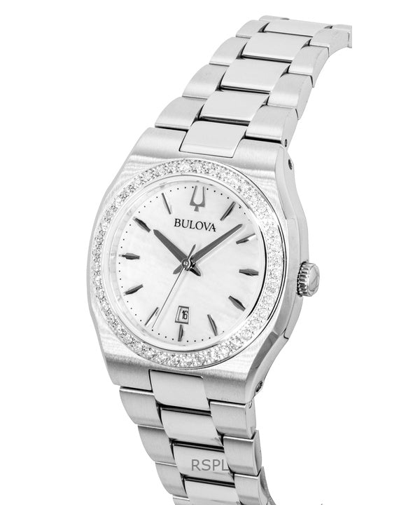 Bulova Surveyor Diamond Damenuhr aus Edelstahl, Perlmutt und Quarzwerk (Modell 96R245)