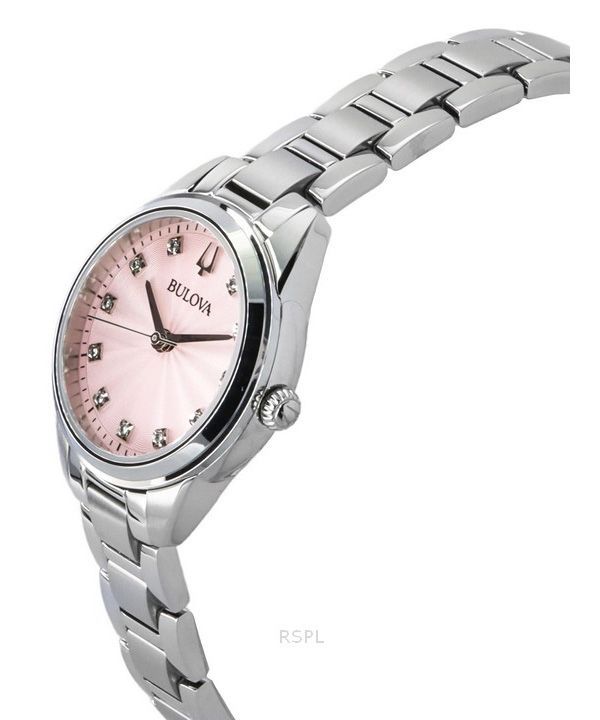 Bulova Sutton Edelstahl Diamant Akzente rosa Zifferblatt Quarz 96P249 Damenuhr