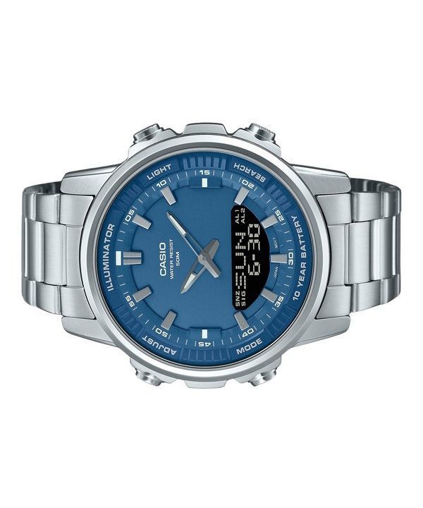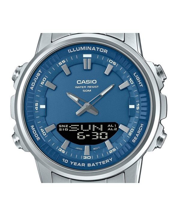 Casio Analog-Digital-Kombination, Edelstahl, blaues Zifferblatt, Quarz, AMW-880D-2A1V, Herrenuhr