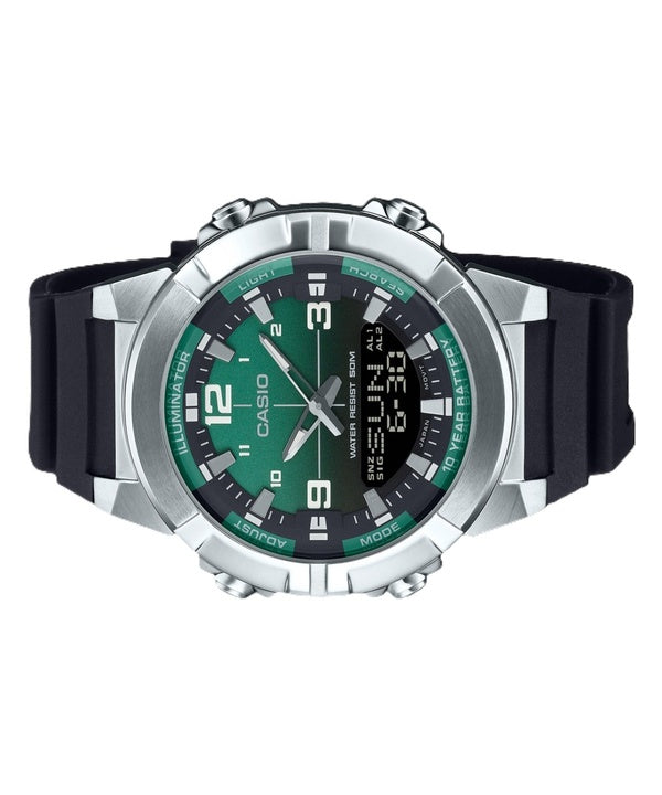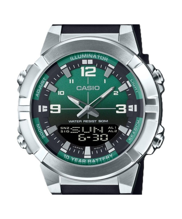 Casio Analog-Digital-Kombination Harzarmband grünes Zifferblatt Quarz AMW-870A-3AV Herrenuhr