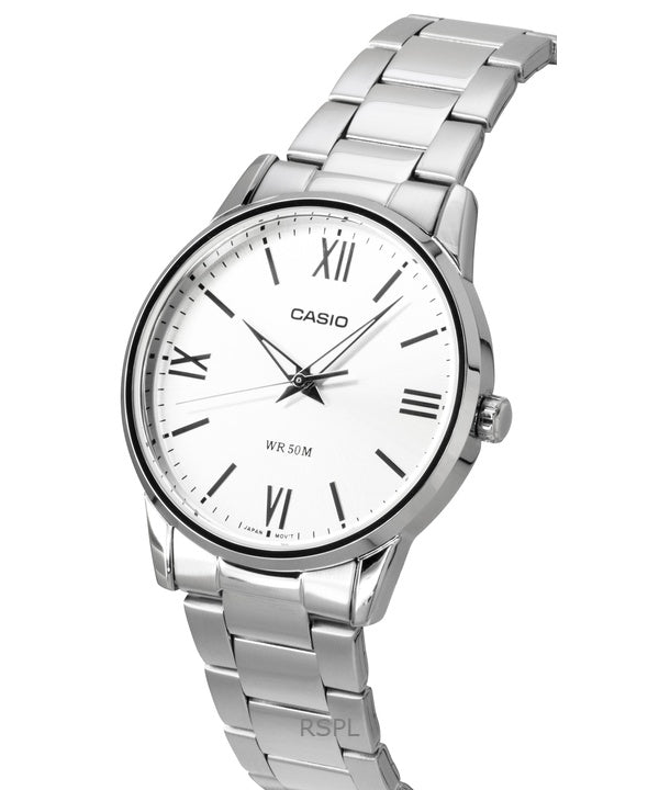 Casio Analog Herrenuhr aus Edelstahl mit silbernem Zifferblatt und Quarzwerk, Modell MTP-1303DD-7AV