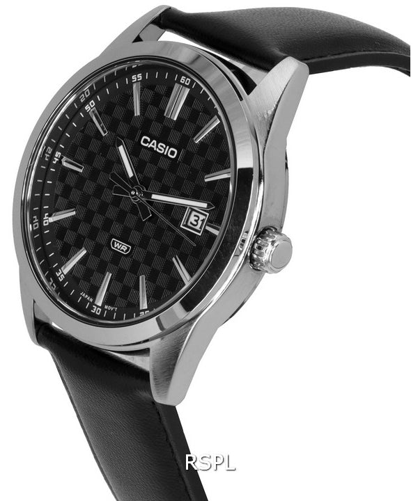 Casio Analog Lederband schwarzes Zifferblatt Quarz MTP-VD03L-1A MTPVD03L-1 Herrenuhr