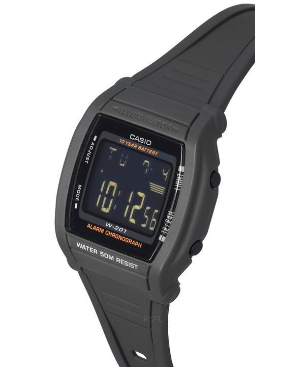 Casio Digital Sports Harzarmband mit schwarzem Zifferblatt und Quarzwerk W-201-1B Herrenuhr