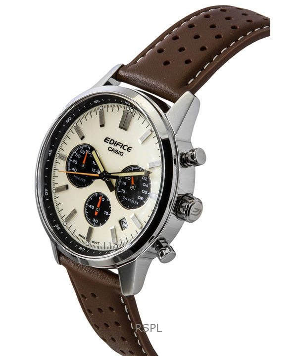 Casio Edifice Analog Chronograph Lederarmband Creme Zifferblatt Quarz EFR-575L-7A 100M Herrenuhr