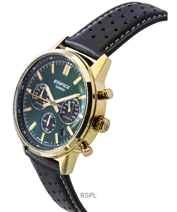 Casio Edifice Analog Chronograph Lederarmband Grünes Zifferblatt Quarz EFR-575CL-3A 100M Herrenuhr