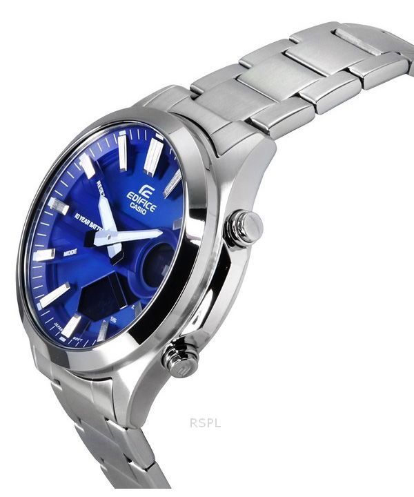 Casio Edifice Analog-Digital-Edelstahl-Quarzuhr mit blauem Zifferblatt EFV-C120D-2A 100M Herrenuhr