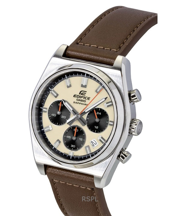 Casio Edifice Analog Standard Chronograph Lederarmband Elfenbeinfarbenes Zifferblatt Quarz EFB-730L-7AV 100M Herrenuhr