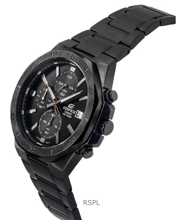 Casio Edifice Standard Analog Chronograph Edelstahl schwarzes Zifferblatt Quarz EFV-640DC-1AV 100M Herrenuhr
