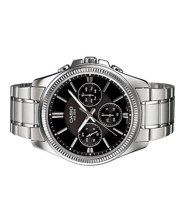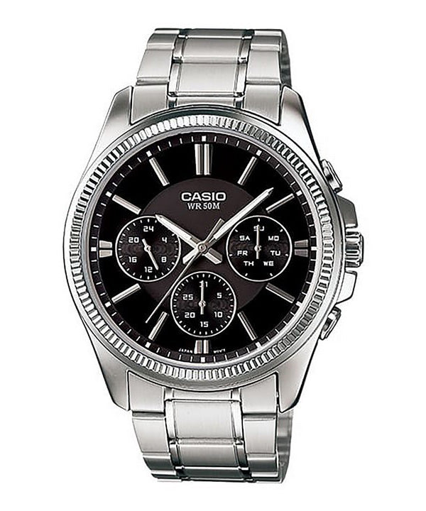 Casio Enticer Analog Edelstahl schwarzes Zifferblatt Quarz MTP-1375D-1AV Herrenuhr
