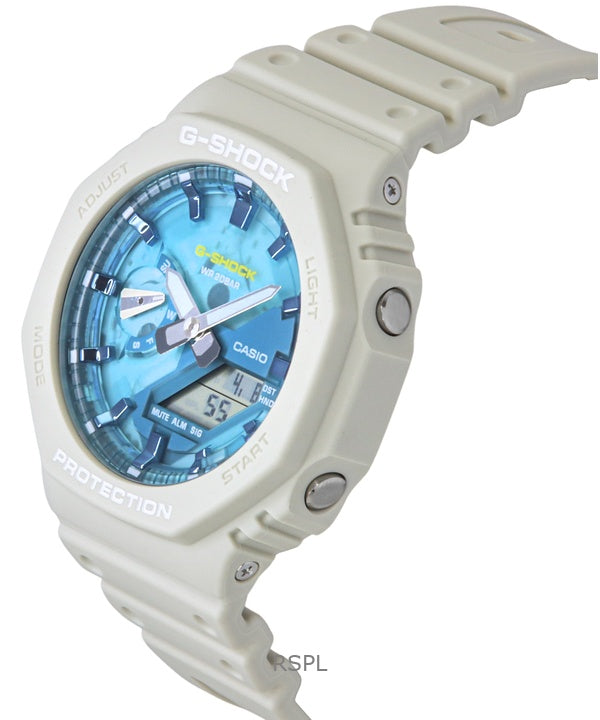 Casio G-Shock Analog-Digital-Armband aus biobasiertem Harz, blaues Zifferblatt, Quarz GA-2100AS-5A, 200 M, Herrenuhr