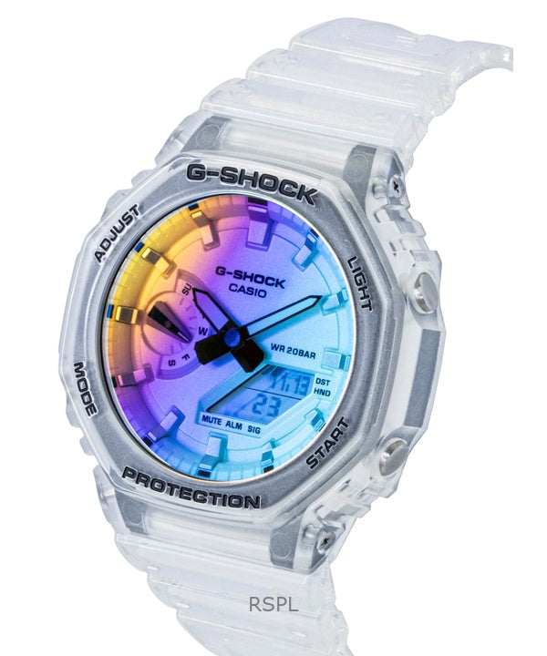 Casio G-Shock Analog-Digital Herrenuhr mit transparentem Harzarmband, mehrfarbigem Zifferblatt und Quarzwerk, GA-2100SRS-7A, wasserdicht bis 200 m
