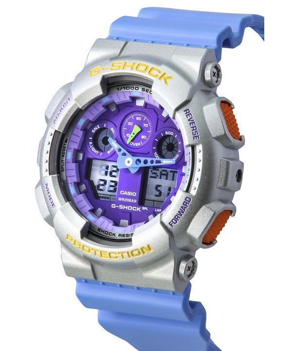 Casio G-Shock Euphoria Analog Digital Blaues Harzarmband Lila Zifferblatt Quarz GA-100EU-8A2 200M Herrenuhr