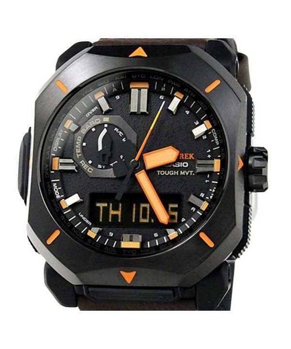Casio ProTrek Analog-Digital-Braunes Lederarmband Graues Zifferblatt Robuste Solar PRW-6900YL-5 100M Herrenuhr