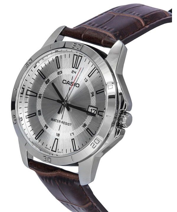 Casio Standard Analog Braunes Lederarmband Silbernes Zifferblatt Quarz MTP-V004L-7C Herrenuhr