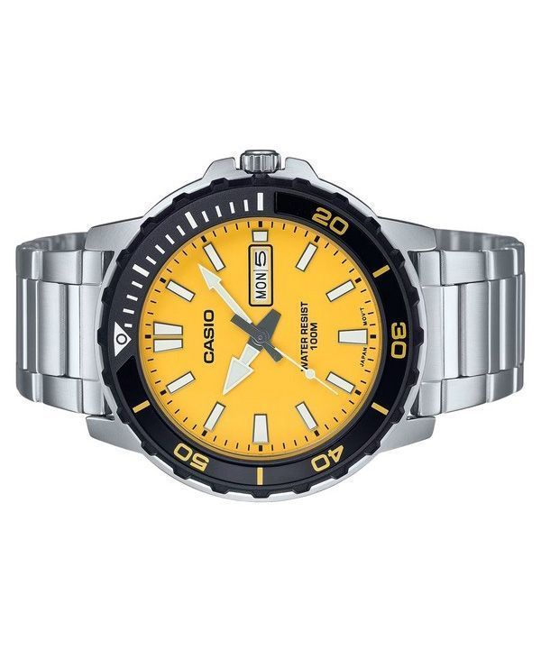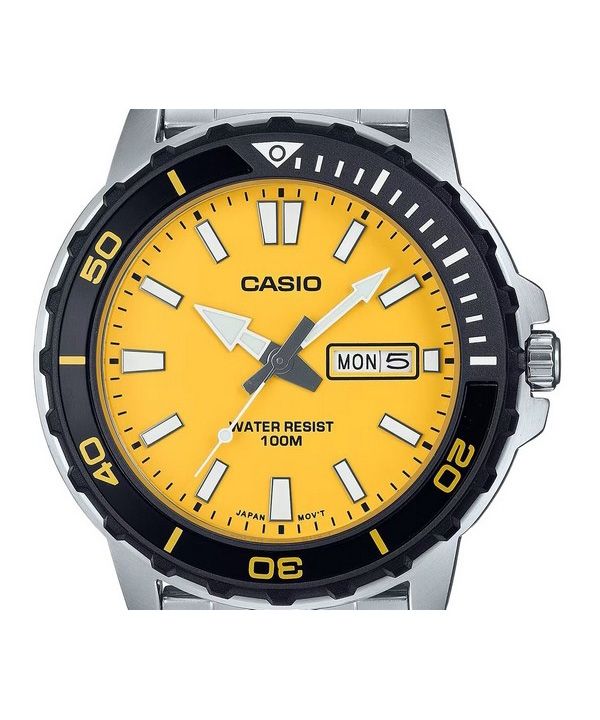 Casio Standard Analog Edelstahl Gelbes Zifferblatt Quarz MTD-125D-9AV 100M Herrenuhr