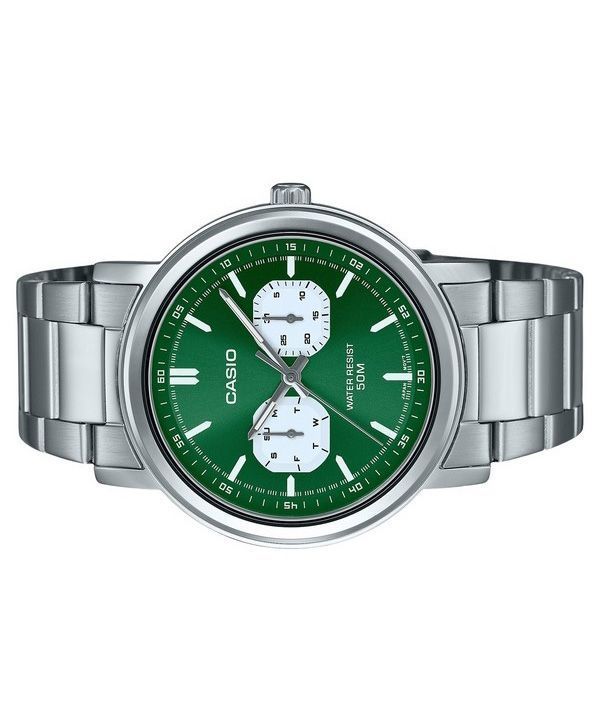 Casio Standard Analog Edelstahl Grünes Zifferblatt Quarz MTP-E335D-3EV Herrenuhr