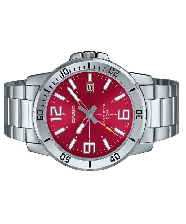 Casio Standard Analog Edelstahl Rotes Zifferblatt Quarz MTP-VD01D-4BV Herrenuhr