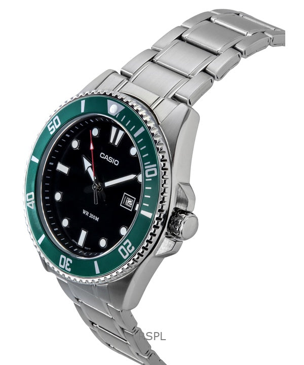 Casio Standard Analog Edelstahl schwarzes Zifferblatt Quarz MDV-107D-3 200M Herrenuhr
