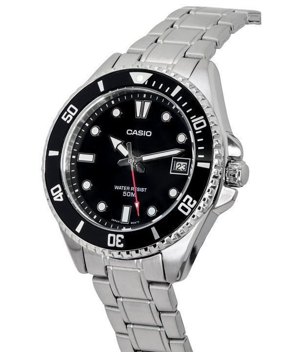 Casio Standard Analog Edelstahl schwarzes Zifferblatt Quarz MDV-10D-1A1 Herrenuhr