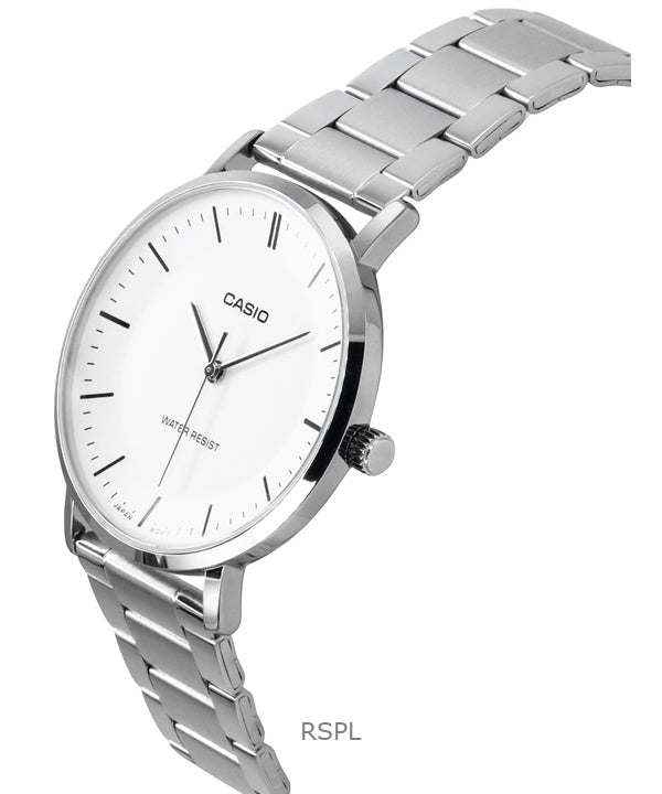 Casio Standard Analog Edelstahl Weißes Zifferblatt Quarz MTP-VT04D-7E Herrenuhr