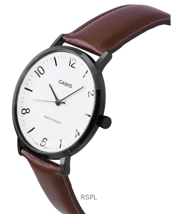 Casio Standard Analog Lederarmband Weißes Zifferblatt Quarz MTP-VT03BL-7B Herrenuhr
