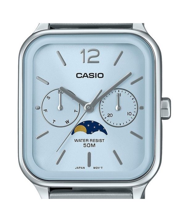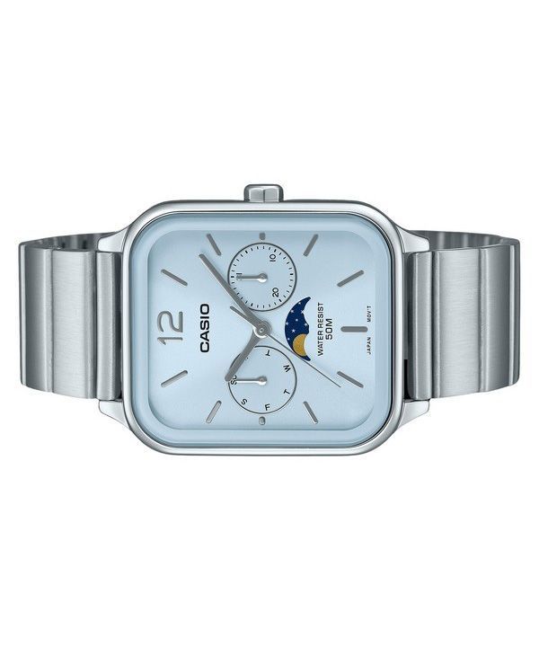 Casio Standard Analog Mondphase Edelstahl Babyblau Zifferblatt Quarz MTP-M305D-2AV Herrenuhr