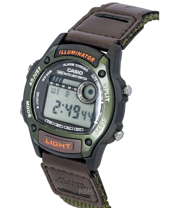 Casio Standard Digitaluhr mit Leder- und Stoffarmband, Quarzwerk, W-220HF-3AV, Unisex-Uhr