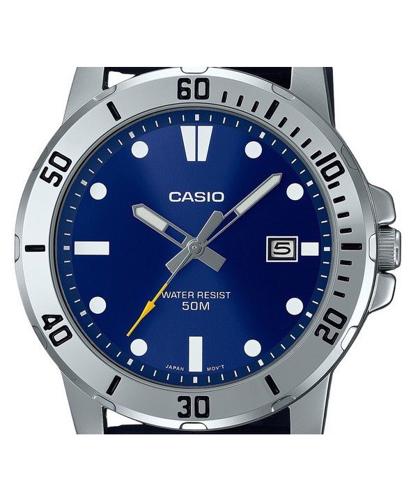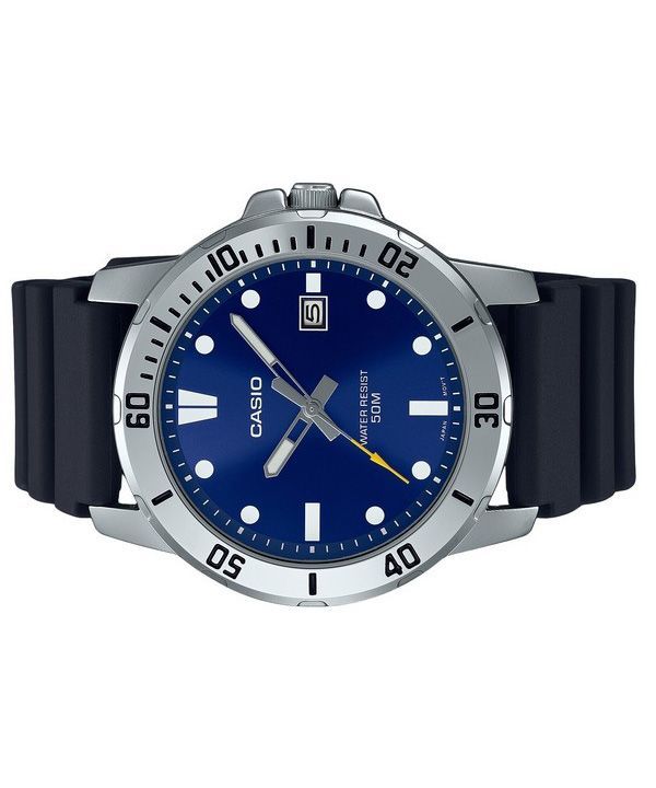 Casio Standard Herrenuhr mit analogem Harzarmband, blauem Zifferblatt und Quarzwerk MTP-VD01-2E