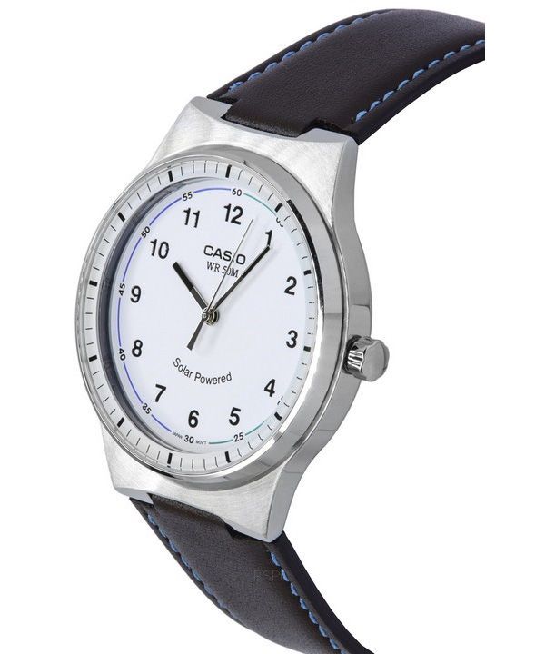 Casio Standard Herrenuhr mit analogem Lederarmband und weißem Zifferblatt, solarbetrieben, MTP-RS105L-7B