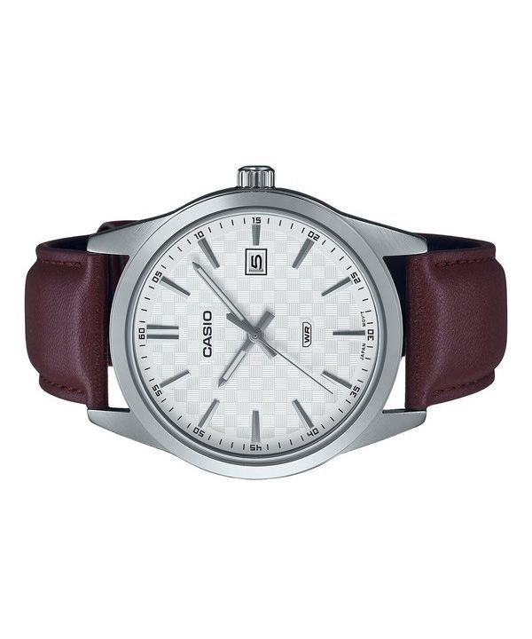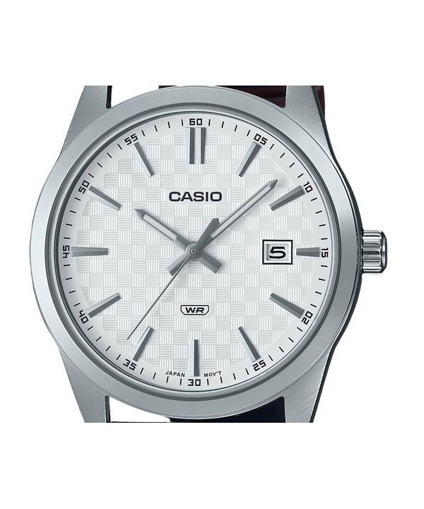 Casio Standard Herrenuhr mit analogem Lederarmband, weißem Zifferblatt und Quarzwerk MTP-VD03L-5A