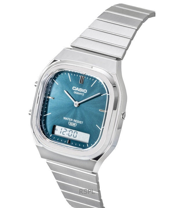 Casio Vintage Analog Digital Edelstahl Hellblaues Zifferblatt Quarz AQ-240E-3A Unisex-Uhr