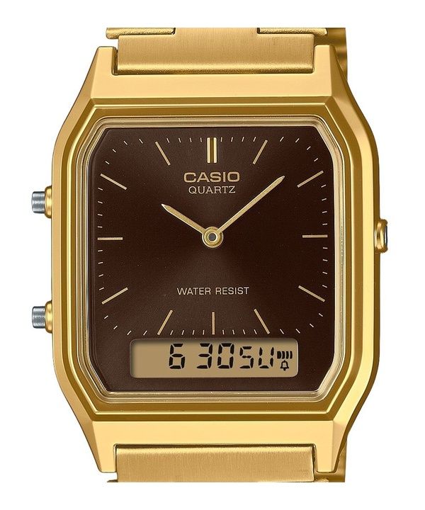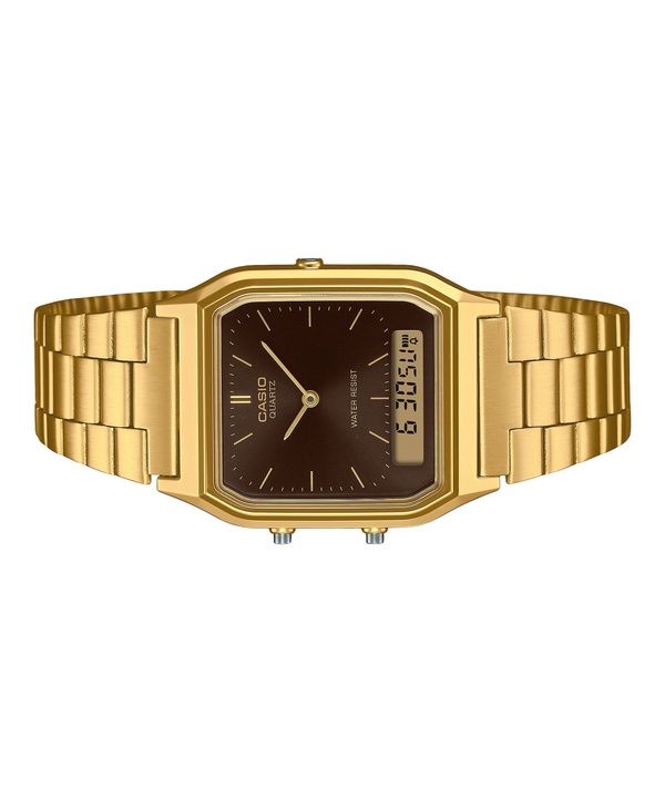 Casio Vintage Analog-Digital-Uhr, goldfarben, Edelstahl, braunes Zifferblatt, Quarz, AQ-230GA-5A, Unisex