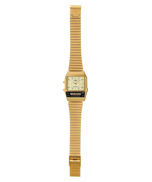 Casio Vintage Analog Digital vergoldeter Edelstahl Beige Zifferblatt Quarz AQ-800EG-9A Unisex-Uhr