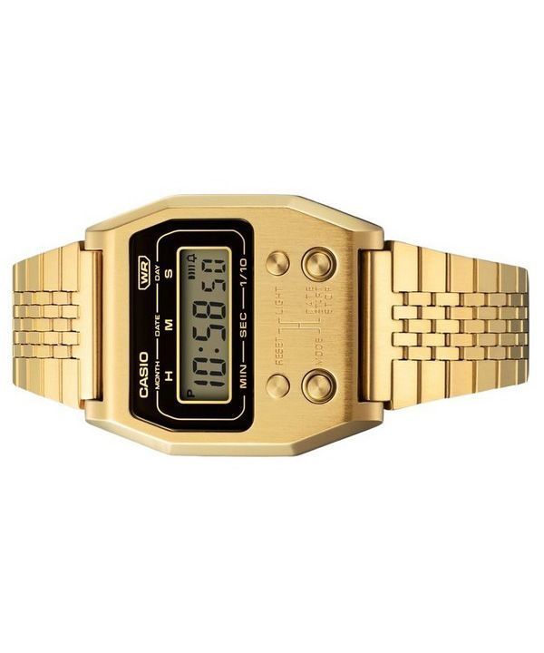 Casio Vintage Digital vergoldete Edelstahl-Quarz-Armbanduhr A1100G-5 Unisex