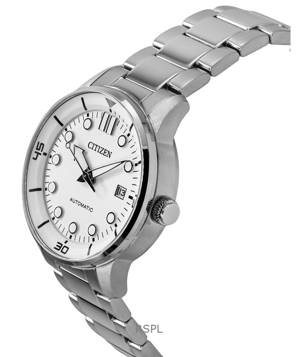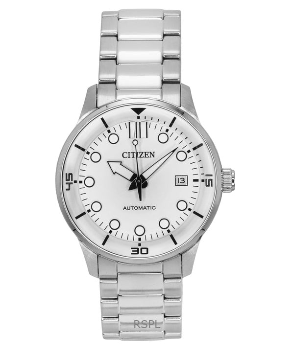 Citizen Automatik Edelstahl weißes Zifferblatt NJ0191-83L 100M Herrenuhr