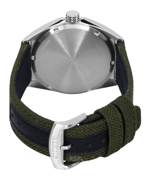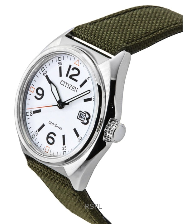 Citizen Eco-Drive Herrenuhr mit grünem Nylonarmband und weißem Zifferblatt AW1571-09A 100M