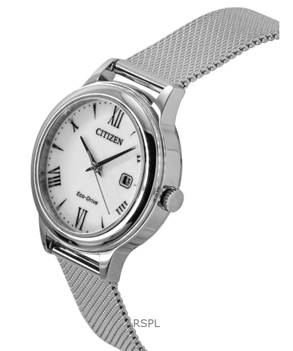 Citizen Elegance Edelstahl weißes Zifferblatt Eco-Drive EW2621-75A 100M Damenuhr