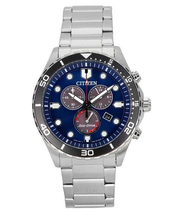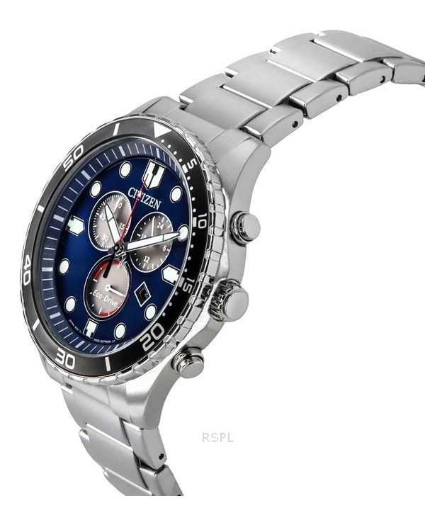 Citizen Sporty-Aqua Chronograph Edelstahl Blaues Zifferblatt Eco-Drive AT2560-84L 100M Herrenuhr
