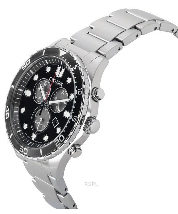 Citizen Sporty-Aqua Chronograph Edelstahl schwarzes Zifferblatt Eco-Drive AT2568-82E 100M Herrenuhr