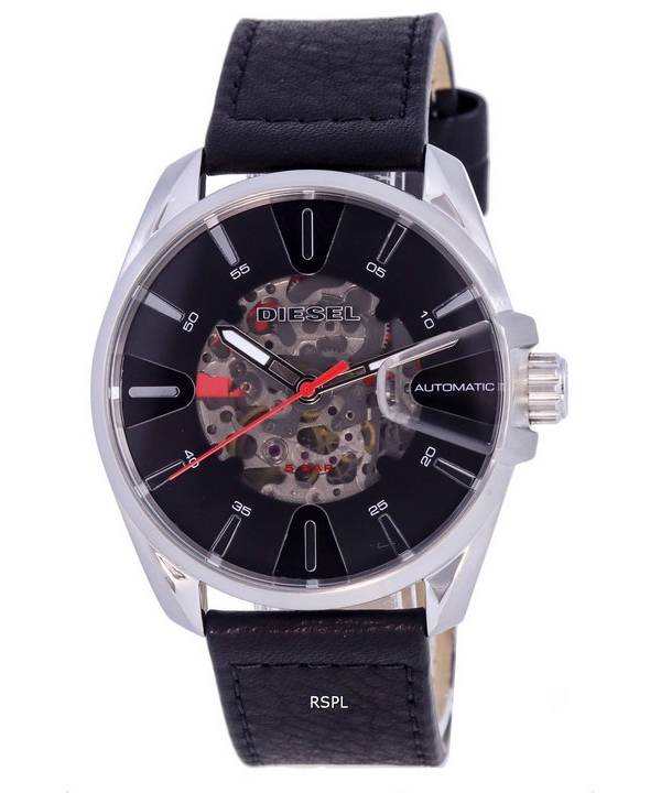 Diesel MS9 Skeleton Leather Strap Schwarzes Zifferblatt Automatische DZ1966 Herrenuhr