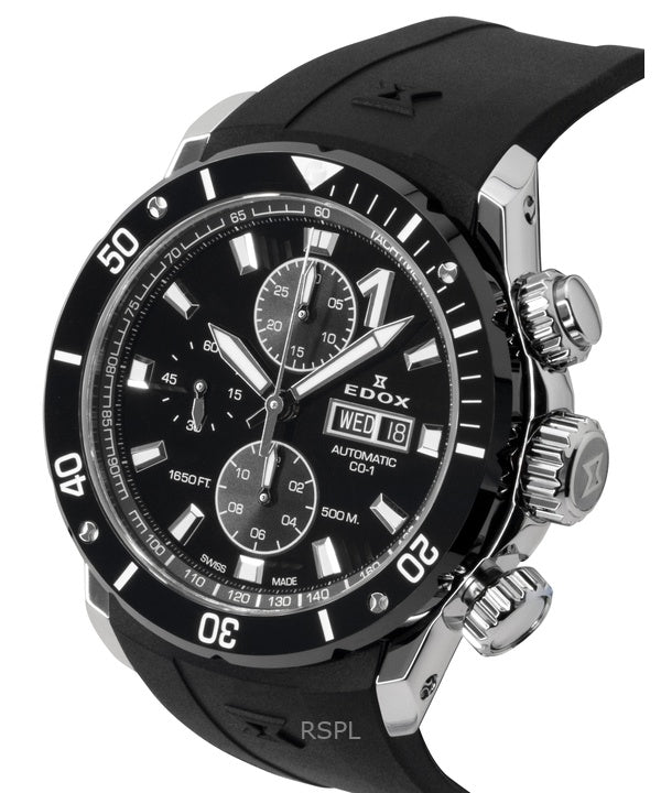 Edox CO-1 Chronograph, Kautschukarmband, schwarzes Zifferblatt, Automatik, Taucheruhr, Herren, 01128-3NRCA-NN, 500 m
