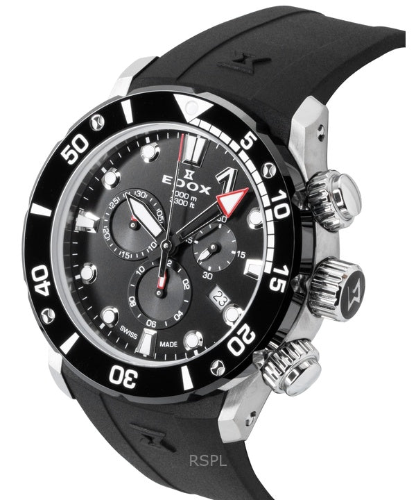 Edox CO-1 Chronograph, Kautschukarmband, schwarzes Zifferblatt, Quarz-Taucheruhr, Herrenuhr 10242-TIN-NIN, wasserdicht bis 1000 m